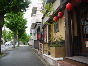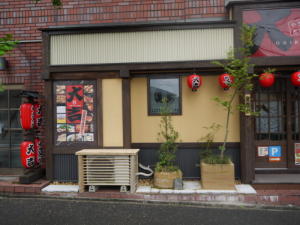 行きつけの焼き鳥屋さん、店舗前に緑を添えて・・・
