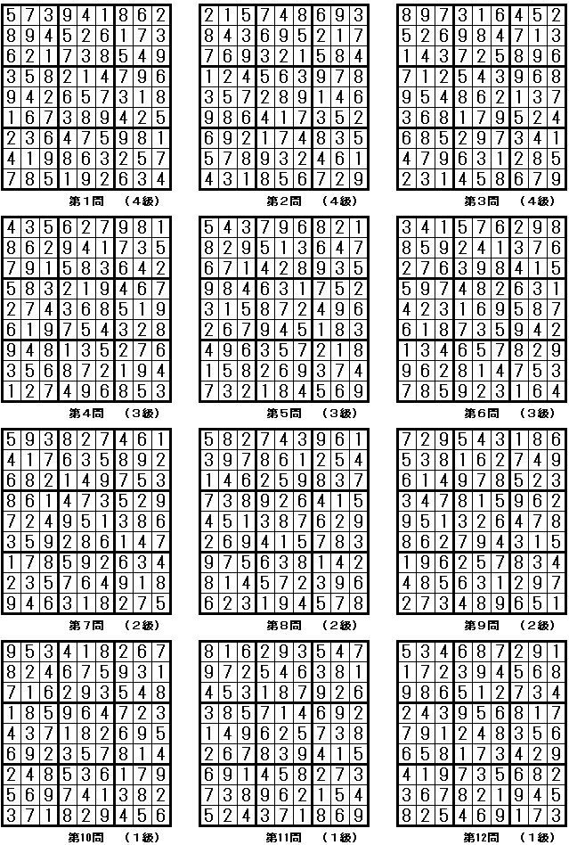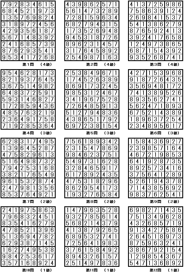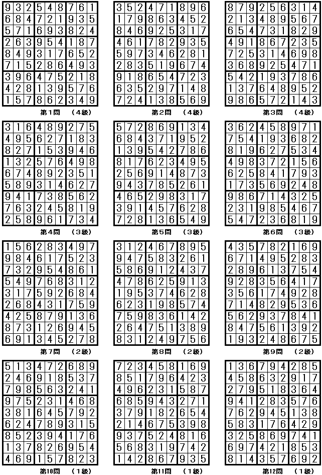 秀美で,配置されている数字が少なく,しかも本当に嫌になるほど難しい(1級:次の一手(一人っ子・お山の大将)が1つしか存在しない局面がたびたび出現する)問題を,じっくり解くことを好む方のために,
