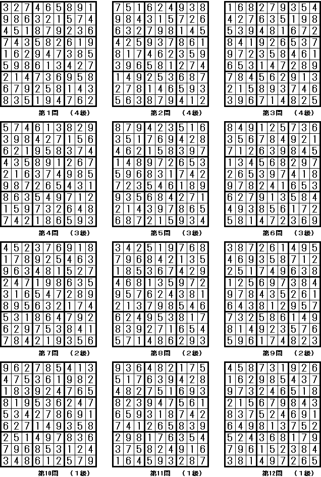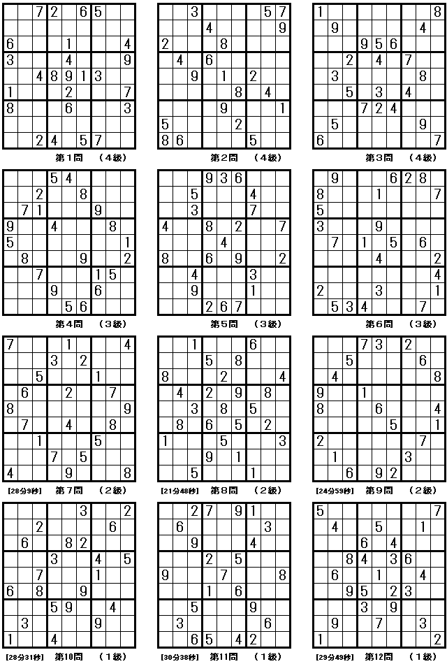 秀美で,配置されている数字が少なく,しかも本当に嫌になるほど難しい(1級:次の一手(一人っ子・お山の大将)が1つしか存在しない局面がたびたび出現する)問題を,じっくり解くことを好む方のために,