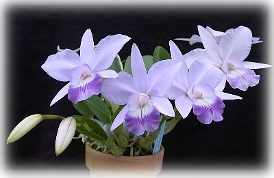 なんとこんな小さな鉢に4バルブ8輪の蕾がつきました。