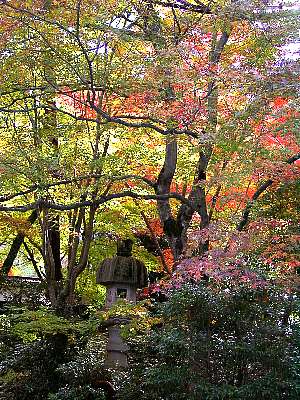 そこここに、石灯篭が・・木漏れ日をうけて苔むした中庭が一瞬輝いています。