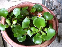瓶の中にはスイレンとホテイアオイが浮んでいる。