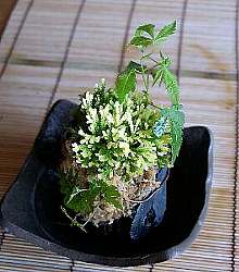 鹿沼土にマグアンプKを少し混ぜてそれらを植え込みミズゴケで包む。