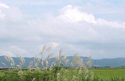 田んぼ脇の道端にもススキが穂を揺らせています。