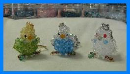 セキセイインコやカワセミ・オカメインコなど…ビーズで作った鳥が満載!どれも本物に近い色合いや形をビーズだけで作り上げています。他にも、お地蔵様や寿司・かき氷・・・。