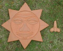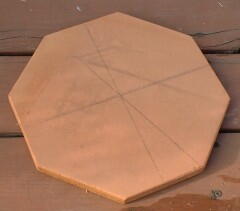 | まずは土台の8角形を作成 30cm角のテラコッタタイルの四隅をカット この後、顔を掘る? |  |