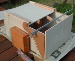 | 30cm×60cmタイルを切って、3面にテラコッタタイルをつけると上 蓋となる