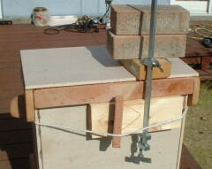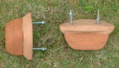 | あまりに重くて運びにくいので取っ手を付けることに、テラコッタタ イルを3枚重ねて、中にネジを埋め込んだ