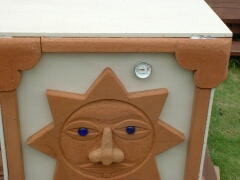 | 立てるとこんな感じ エンブレムを真ん中につけ、側面に取っ手をつける予定 |  |