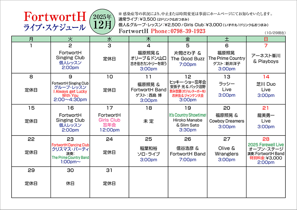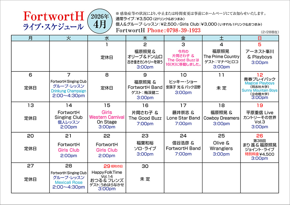 カントリー&ウェスタンシンガー福原照晃、カントリーライブハウスFortwortHの情報サイト