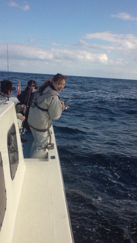 今日船釣りデビューの彼女、あのウネリでよくがんばりました!