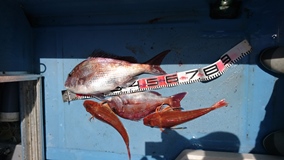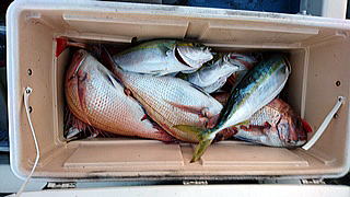マダイ3枚 65 50 40 他ハナダイ ホウボウ多数 カナガシラ多数 イナダ ヒラメ フグ等でした!
