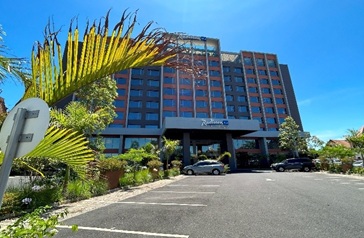 17時05分のアンタナナリボ国際空港発のモーリシャス航空 MK289便でモーリシャスのシール・セイウッドザーギュール・ラングーラム国際空港に向かいます。1時間45分の飛行です。14時にホテルの空港行きシャトルバスを予約しています。それまでホテル周辺を散策しました。ホテルの廻りには高いビルがないので、遠くからホテルが見えます。ランチは、フードコート内のピザ屋に行きました。