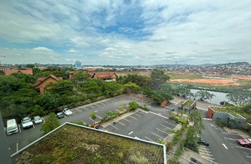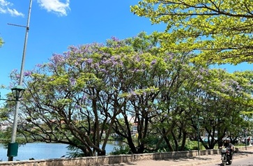 ホテルの前にはやや大きい池があるので、ホテルの名前に「Waterfront」が入っています。池の畔にはジャカランダ の木が紫色の花を咲かせていました。