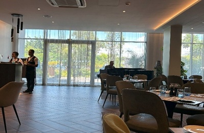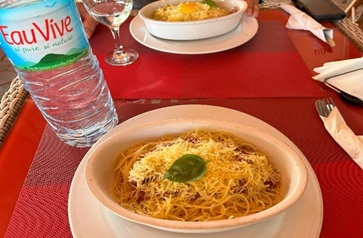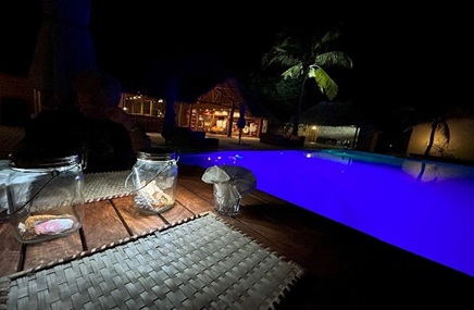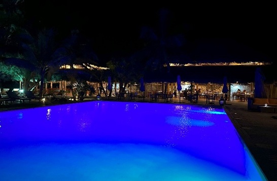 ホテルに帰り、プールの脇のレストランで夕食をいただきました。