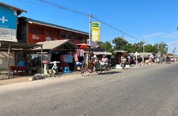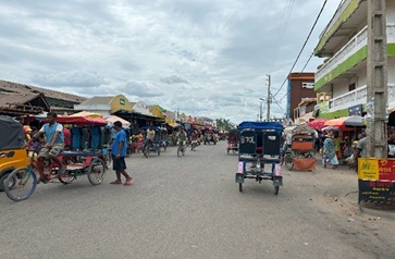 プスプス(輪タク)です。街中では、プスプスとトゥクトゥクが大活躍してました。代金は1〜2㎞程度で80円と凄く安いです。プスプスは、トゥクトゥクと違ってゆっくりと進むので、街の景色をスローテンポで楽しむことができます。ホテルの前から市街地までの景色をじっくり見回しました。