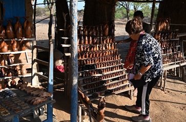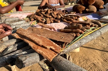 バオバブのお土産品です。手前の樹皮は、粉末にして水と練って顔に塗ります。女性の「化粧」です。保湿効果などがあって、美肌になるそうな。この「化粧」を塗っている女性は多かったですよ。大概の女性は、美容に関心がありますね