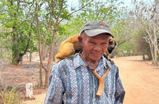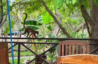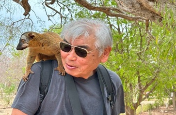 しばらくすると、ドライバーとキムニパークの管理をしている人が来ました。肩にはキツネザルが乗っていました。
