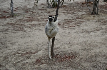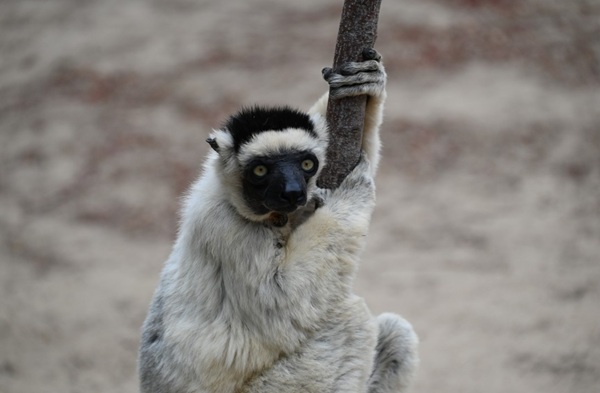 ベローシファカです。管理の人がうまく地上に誘導し、横飛びしているところを見せてくれました。