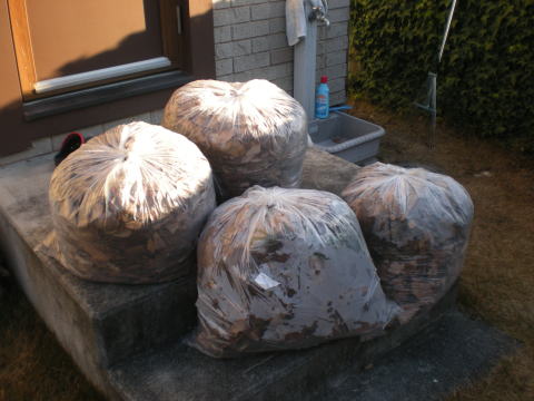 庭の落ち葉、ぎゅうぎゅうに詰め込んで45リットル袋に4袋。