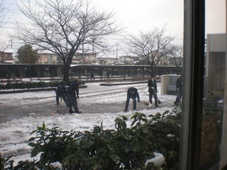 学校では早朝から野球部の生徒諸君が雪かきをしてくれた。