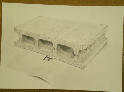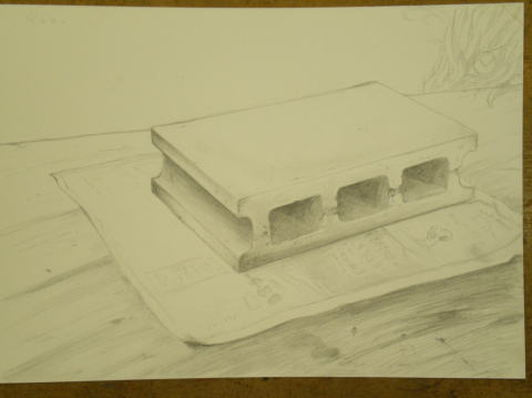 まずは、紙の上に煉瓦を一個。