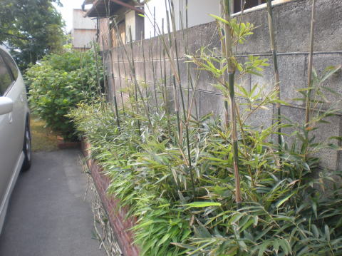 昨年の今頃、はみ出てくる竹の根っこを切って、