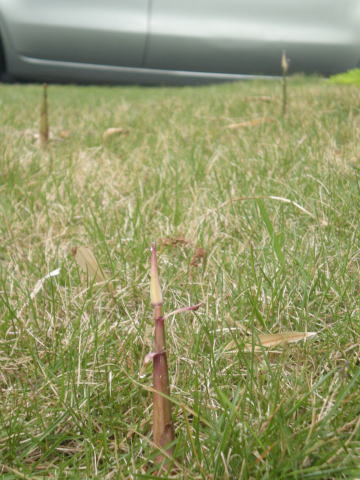 芝生にタケノコが生えている。