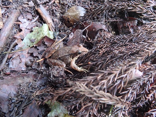 ニホンアカガエル(2025年9月12日) 枯葉に紛れるニホンアカガエル(2025年9月12日)