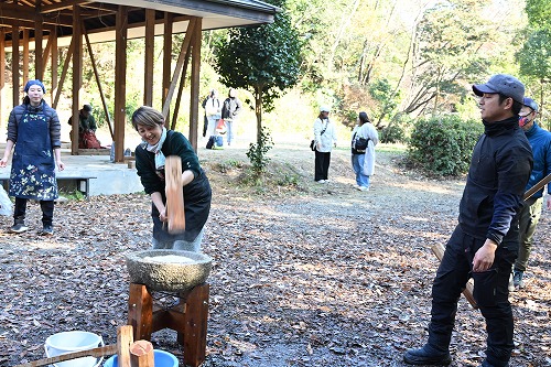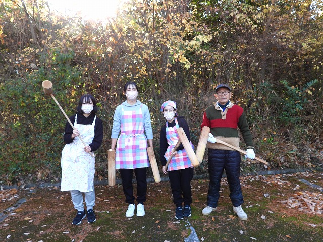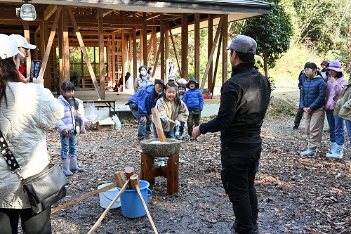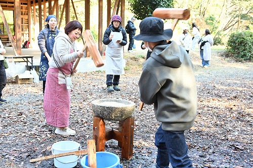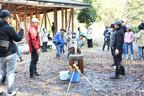 森の学校&森の幼稚園とお母さんの自然学校@&A 令和7年度第9回 ”餅つきと仔馬” 餅つき始め(2025年12月7日)