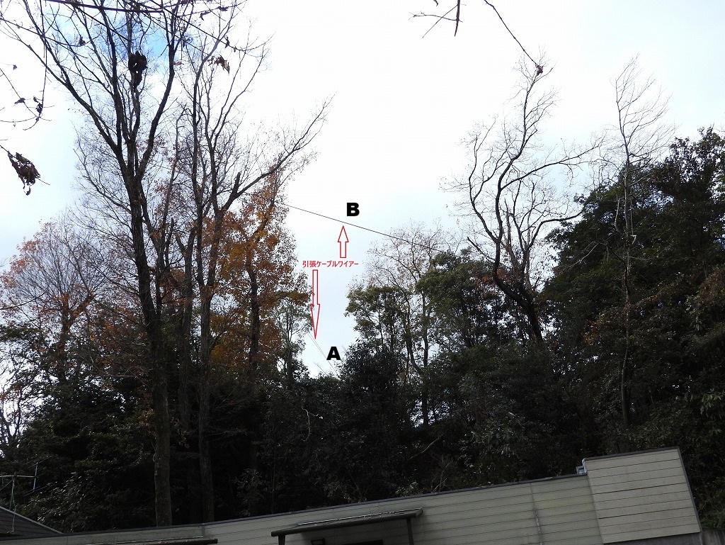 里山サロン 伐採班 "アイアイランド・コナラ大径木伐採”引張地点B(2025年12月20日)