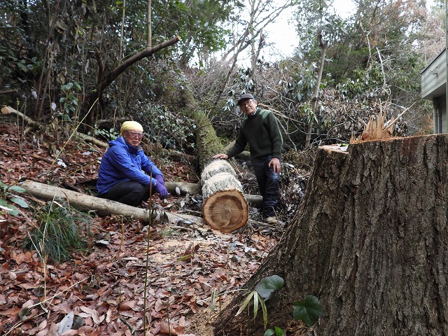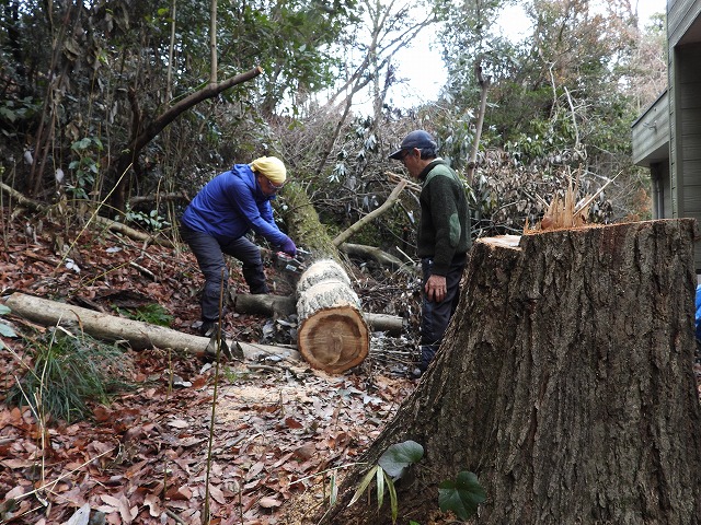 里山サロン 伐採班 "アイアイランド・コナラ大径木伐採 片付け”根元部 切れた!(2026年2月6日)