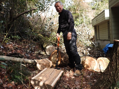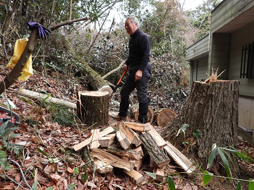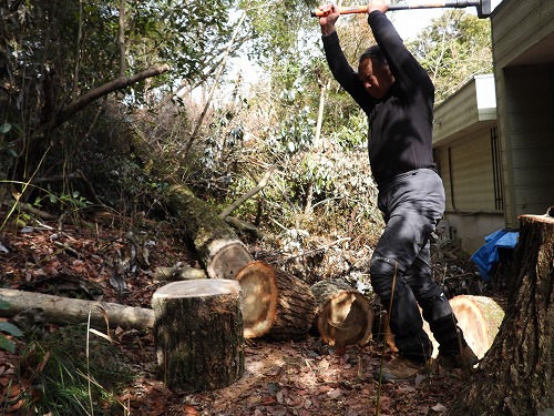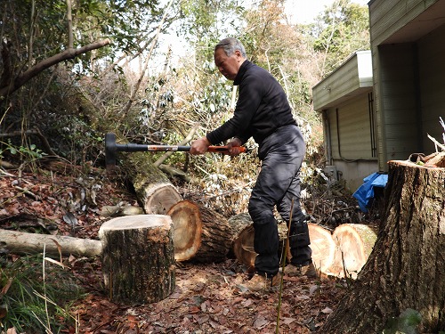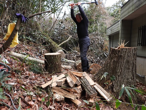 里山サロン バードバンディング : 合間に薪割り(2026年2月18日)