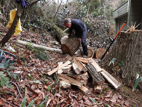 里山サロン 伐採班 "アイアイランド・コナラ大径木伐採 片付け”薪割り(2026年2月28日)