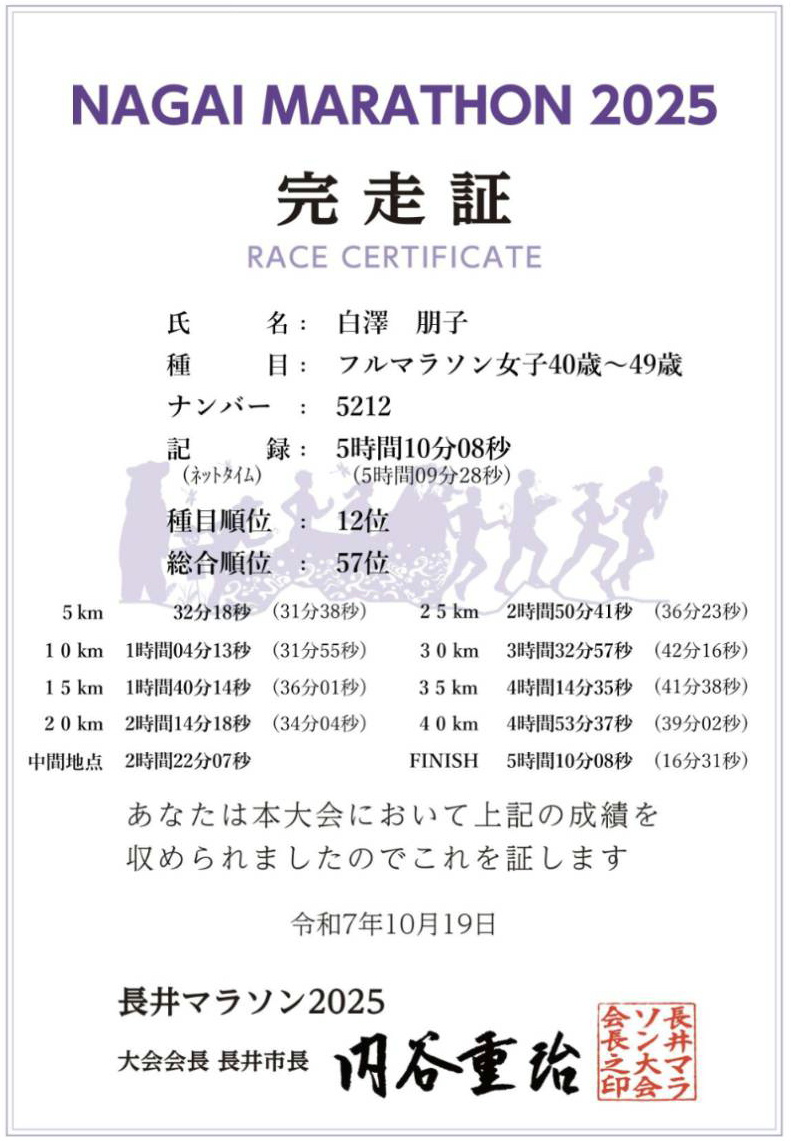 白澤会員 2025-10-19 長井マラソン2025 参加種目:Full