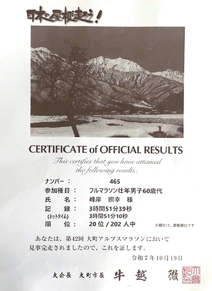 峰岸会員 2025-10-19 第42回 大町市アルプスマラソン 参加種目:Full