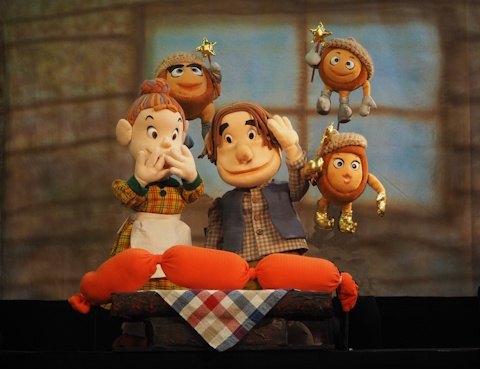 西洋の昔ばなし三つの願いより 「三つのねがい」 2025年度作品 上演中 ペローの童話集に「愚かな願い」というお話があります。 ホーボーズの三つのねがいはこのお話をもとにして作った人形劇です。 のんびり者のきこりと働き者のおかみさん。朝から大きなおくびをしているきこりに さっさと山に行って木を切っておいでと言うおかみさん。 きこりはいやいやながら出かけていきます。森を抜け山に着くとやっと大きな木を見つけました。この木を切ればかみさん喜ぶぞときこりは斧を振り上げて・・・・・。 どんぐりの妖精が出てくるとても楽しいお話になりました。 小さなお友達も大喜び。みんなで楽しめるたのしい人形劇になりました。 |