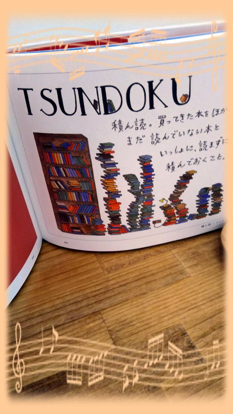 このページの言葉は、日本人なら理解できる「積ん読」です。読もう読もうと思って、時間がないのを言い訳に、つい「ツンドク」ってこと、よくありますよね? 読書の秋、お部屋がこの絵のようにならないうちに、読みたい本のページを開いてみましょうよ。