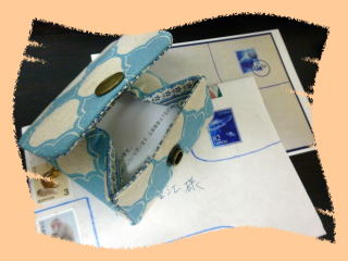 9月は毎年、絵封筒展に参加していますが、今年も絵封筒、書きました。下の写真は、ギャラリーから送られてきた展覧会の案内。モダンな和柄の切手入れの中に、お手紙が入っているという趣向を凝らしたものです。切手入れはギャラリーオーナーさんの手作りだそう。