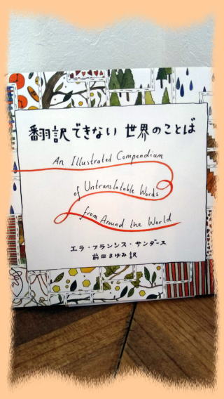 今月はこんな本を読みました。『翻訳できない世界のことば』(創元社)。読む、というより見るというような、大人の絵本です。世界の国々には、他の国の言葉に訳す時、微妙にニュアンスが違ってきてしまう、その国独特の言い回しがあるけれど、それらの言葉を集めて解説した本。