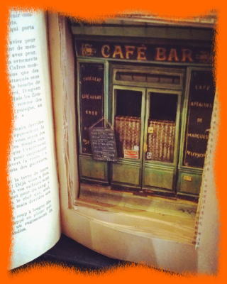 古い洋書を開くと、そこにひっそり、ミニチュアのカフェが。 本の内容に連動したお店だったら、尚更、その物語に引きこまれますね。本を手にした人だけが迷い込める、不思議な小さなカフェ。