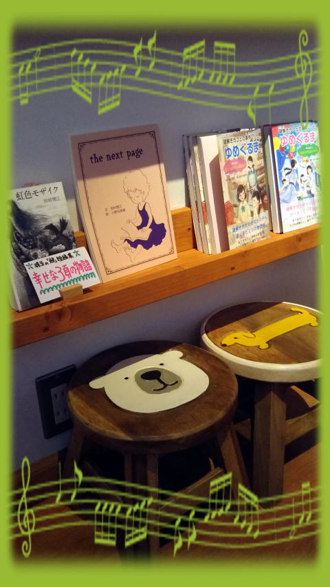 良い絵本の情報をいつも丁寧に教えてくださる絵本専門店『くわのみ書房』さん(千葉県習志野市)。お店の一角には、私の本を置いて頂いて、とても嬉しいです。絵本と触れ合い、美味しいお茶まで飲めて、ゆったりした時間が過ごせる素敵なお店ですよ。