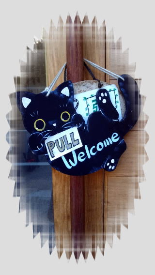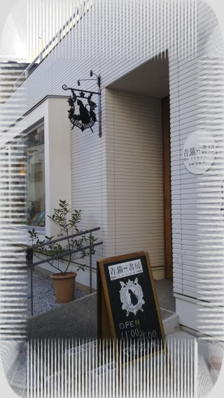 入り口のドアには、こんな黒猫が、のんびりぶらさがっていました。店名に「猫」が付くだけあって、お店の中には猫グッズがたくさん! テーマやグレードごとに並んだ、見やすくて、すっきりした本棚の間に、にぎやかな小物類が置かれていて、楽しくなります。そういえば、猫の本を集めた棚もあったなぁ。レジのカウンターの中には、猫じゃなく可愛い犬がいましたけどね。ギャラリーにもなっているカフェが併設されているので、ひと休みも出来ます。