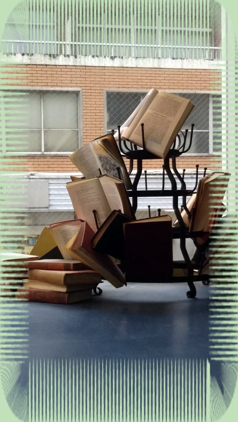 本の飾り方で、素敵だなと思った、もう一つの風景。神楽坂の本屋さんのウィンドウで見掛けたものです。本来はブックラックではないのでしょうが、こんなふうにセピア色の洋書を飾ると、クラシックな絵になりますね。読むだけじゃなく、飾る楽しみもあるのが、「紙の本」です。