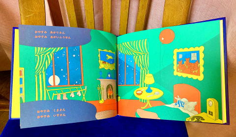 家族や友だちに「おやすみなさい」を言うだけじゃ飽き足らず、海へジャングルへ、宇宙へと「おやすみ」が広がっていくのが、子どものイマジネーションらしく可愛いな。