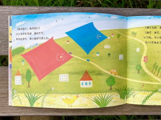 主人公は、リンくんの水色のハンカチと、ランちゃんのピンクのハンカチ。ご近所に住む、友人の息子さんが”凛”君というお名前なので、そこから名付けた思い出があります。その息子さんも、今は立派な社会人。