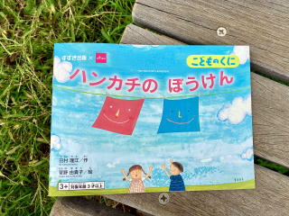 百円ショップのダイソーから、私が文を担当した絵本が出ます。『ハンカチのぼうけん』(大創出版)です。絵は、菅野由貴子さん。この絵本、2008年に、鈴木出版の月刊誌『こどものくに』(チューリップ版)として出された絵本なのですが、ダイソーと鈴木出版のコラボで、ダイソー店舗に並ぶことが実現しました。