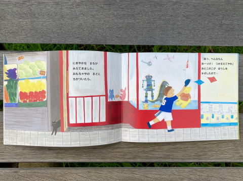 おもちゃ屋さんのシーンが好き。ガチャポンが並んだ、赤い外壁のおもちゃ屋さんって、どこかの街の商店街に本当にありそう。入ってみたくなります。