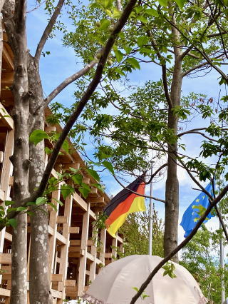 ドイツ館は資源の無駄を無くすため、釘までも再生可能な木材で出来ているとのこと、ドイツといえば森のイメージですものね。