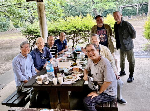 恒例秋の園遊会を男8名で持ちました。 参加者:及川、奥山、河上、倉持、中桐、伴、巽、四宮 常連の小池さん奥平君は欠席でしたが来春4/1(水)は参加してくれます。 心配していた雨も降らずに無事午後三時半の後片付けまで大いに語って飲みました。内5名は八柱駅前のカラオケへ。 次回も元気に集まります。四宮